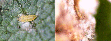 Control químico: - Afido o pulgón amarillo del algodón, Aphis gossypii, y el áfido o pulgón verde del ajonjolí, Myzus persicae, pertenecientes a la familia Aphididae (Fig. 10). Ninfas y adultos succionan la savia de las plantas agrupados en colonias en el envés de las hojas. Se presentan en bajas poblaciones las cuales tienden a incrementarse y a afectar el desarrollo del cultivo.
