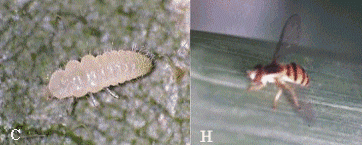 párasito de áfidos. Control químico: Insectos Raspadores Chupadores En este grupo de insectos los más importantes son: Trips amarillo de la caraota Thrips palmi Karny y Trips o Piojitos Calyothrips brasiliensis, de la familia Thripidae. Las ninfas y adultos de los trips o piojitos causan daños al raspar la superficie de las hojas para chupar la savia. Como consecuencia de sus ataques, por el envés se observa un engrosamiento de las nervaduras y una coloración plateada, la cual, posteriormente se transforma en bronceada (Cermeli y Montagne, 1991).