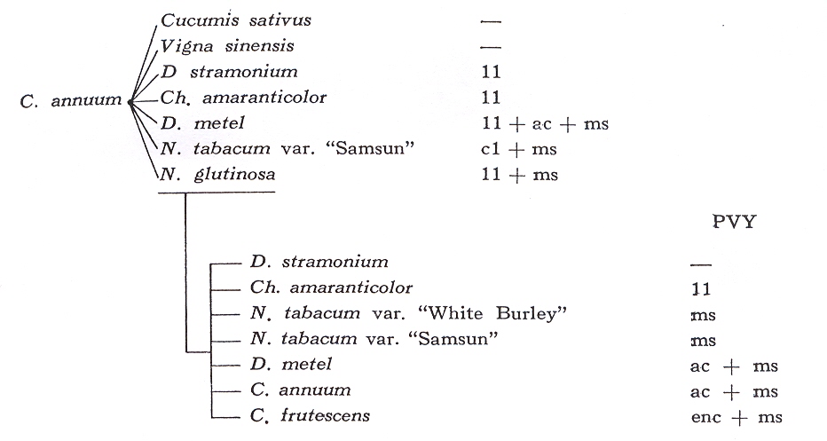 viruses of pepper in Central Florida. Phytopathology 49: 97-100. 3) BENSON, A. p. and E. SIGGEIRSSON. 1962. Variation in virulence of PVY strains in certain solanacearus hosts. Phytopathology 52: 3 (Abstr.) 4)