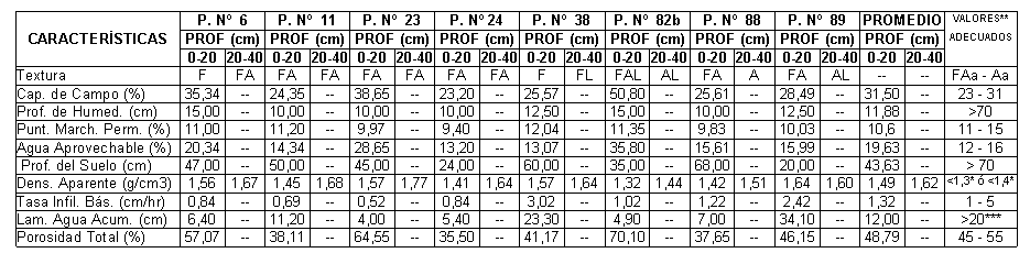 | Cuadro 3. Algunas propiedades físicas del suelo determinadas en la UP La Esperanza |